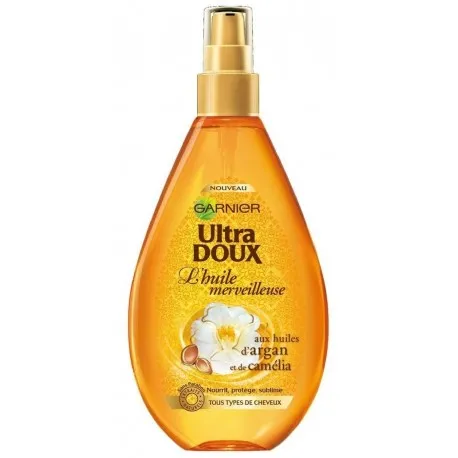 Véritable embellisseur capillaire, pour les cheveux secs, l’huile merveilleuses Garnier Ultra Doux associe deux huiles précieuses aux vertus merveilleuses. Ultra Doux associe deux huiles de légende aux vertus multiples : L’huile d’Argan, sourcée équitablement au Maroc aux propriétés hautement nutritives, se mêle à l’huile de Camélia, réputée pour son parfum délicat.